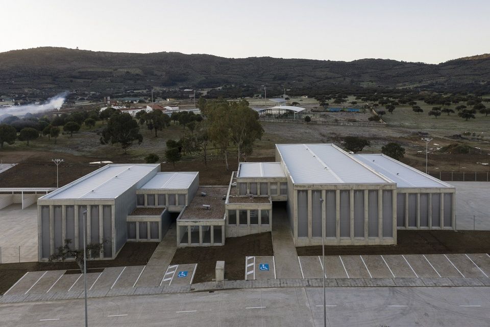 Le bâtiment d'enseignement de l'école primaire relie diverses zones d'enseignement grâce à un long couloir.
